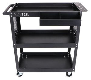 3 police, odnímatelný box, boční perforace, otočná kolečka s brzdou, kovová konstrukce.