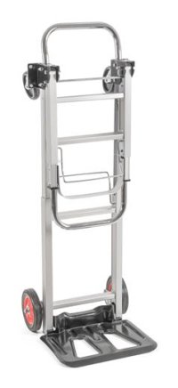 Multifunkční rudl 2 v 1 – rudl a přepravní vozík, pro manipulaci s těžkými břemeny, hliníková konstrukce, nosnost 150 kg, kola o průměru 15 cm.