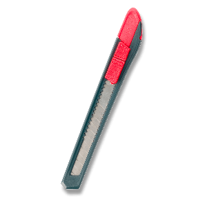 Odlamovací nůž. Zatahovatelné odlamovací břity o šíři 9 mm.