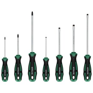 Šroubovák sada 7díl. PHILLIPS, PLOCHÉ STALCO. sada obsahuje 7 ks šroubováků CrV: - SL3 x 75 - SL4 x 75 - SL5,5 x 125 - SL6,5 x 150 - PH0 x 75 - PH1 x 75 - PH2 x 100 Sada šroubováků určených pro montáž …