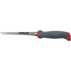 pilka na sádrokarton pevný a stabilní list pro řezání a prořezávání sádrokartonu vysokofrekvenčně kalené 3x broušené zuby, tvrdost HRC 52±2, 7 TPI ergonomická ABS rukojeť s měkčenou gumou délka listu …