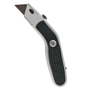 celokovové tělo nože ergonomický tvar s pogumovanou rukojetí čepel uchycena uvnitř těla na posuvném jezdci výklopný zásobník na náhradní břity jeden náhradní břit v balení náhradní břity kód: