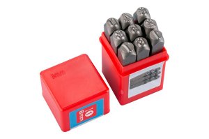 ruční raznice - číslice rozměry: výška písmen 8 mm (typy znaků podle DIN 1451) balení: plastový box kvalitní uhlíková ocel - pevnost 800 N/ mm2 , zakalené hroty