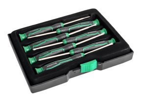 Šroubovák jemný, sada 7díl. STALCO. sada obsahuje ploché šroubováky: - 1,5 x 50 - 2,0 x 50 - 2,5 x 50 - 3,0 x 50 - PH000 x 50 - PH00 x 50 - PH0 x 50 7dílná sada přesných šroubováků.