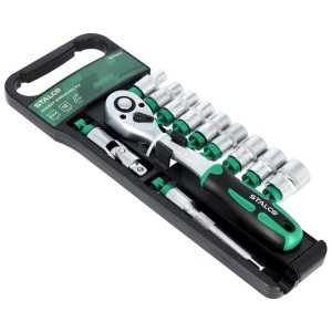 Sada obsahuje ráčnu 1/4", prodloužené nástavce 50 a 100 mm, šroubovák s nástrčnou hlavou 1/4 palce, ohebný prodloužený nástavec 1/4 palce, gola hlavice 4-14 mm, hroty 22ks, imbus 3ks.