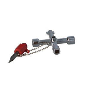 Univerzální klíč pro otevírání elektrických rozvaděčů, plynových a vodních kohoutů, pro klimatizaci, ventilaci a odvzdušňování topení.
