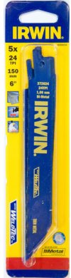 List pilový na kov do mečových pil, 150 mm / 24TPI ( 5 ks ) IRWIN Délka: 150 mm Počet zubů / TPI: 24 Balení: 5 ks Bimetalová konstrukce pro rychlejší řezání, delší životnost ostří, které se může ohnut, …