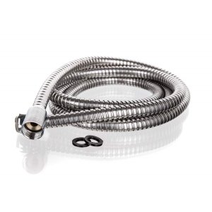 Dvouzámková nerezová spchová hadice s mosaznými maticemi, délka 150 cm, při sprchování se hadice nekroutí.