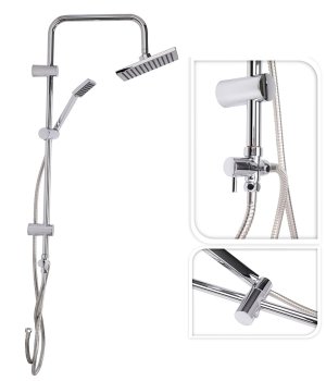 - kompletní sprchový set Bathroom Solutions- sada obsahuje sprchový sloup včetně hlavové a ruční sprchy, hadice a držáku- ruční sprcha s dlouhou ohebnou hadicí z nerezové oceli- velká komfortní hlavová …