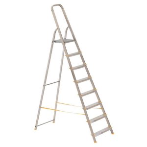 Hliníkový žebřík dvoják, klasický A tvar. 2 příčky na obou stranách.