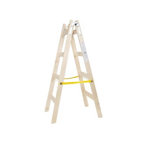 Dvojitý dřevěný žebřík Strend Pro se 6 příčkami se vyznačuje pevnou a stabilní konstrukcí, která zaručuje bezpečnou práci ve výšce.
