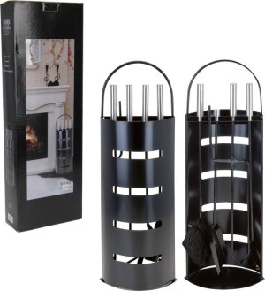 celkové rozměry: 43x39x81 cm úložiště pro dřevo: 30x30x47 cm nářadí: lopatka, pohrabáč, smetáček materiál: kov barva: černá baleno v kartonu tloušťka: 1,0 mm