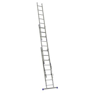 žebřík hliníkový trojdílný univerzální s úpravou na schody EUROSTYL ALVE počet příček 3x7, 3x8, 3x9, 3x10, 3x11 max. délka 3,99 m; 5,13 m; 5,69 m; 6,26m; 7,11 m šířka 454 mm vroubkovaná protiskluzová …