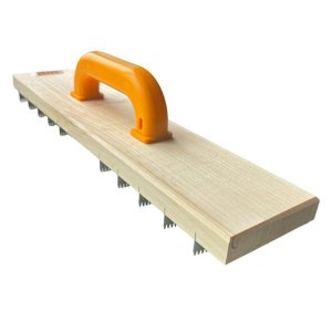 dřevěný škrabák s ocelovými břity jemný zub plastová rukojeť určen pro odstranění starých omítek