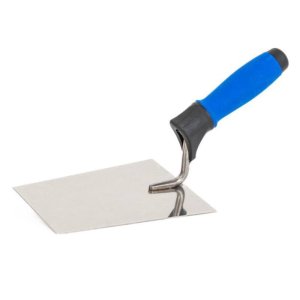 lžíce nerezová, štukatérská, svařovaná ergonomická, dvousložková rukojeť (G-5) nerezový, kyselině odolný plech, tl. 1,2 mm oboustranně broušená na štukatérské práce, vhodná i pro kameníky