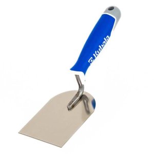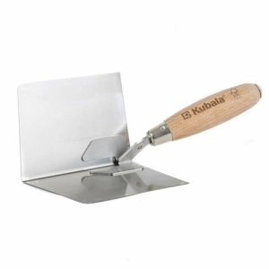 lžíce štukatérská nerez rohová vnitřní KUBALA ergonomická, buková, lakovaná rukojeť nerezový, kyselině odolný plech, tl. 1 mm pro důkladné dokončení rohů