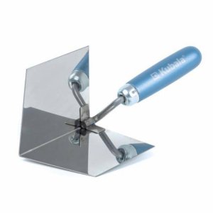 lžíce štukatérská nerez rohová vnější KUBALA ergonomická, buková, lakovaná rukojeť nerezový, kyselině odolný plech, tl. 1 mm pro důkladné dokončení rohů