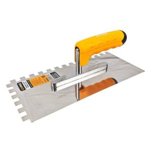 hladítko nerez zubové 270 x 130 mm ergonomická, dvousložková rukojeť (G-1) nerezový, kyselině odolný plech tl. 0,7 mm půlkulatý zub slouží k nanášeníhrubých vrstev lepidel pod obklady a dlažby
