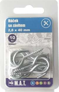 rozměry (D x pr.): 100 x 7,7 mm materiál: Zn 5 ks Háček se závitem 100 x 4,7 mm pro uchycení předmětů a břemen do různých materiálů.