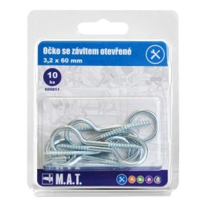 rozměry (D x pr.): 50 x 3,2 mm materiál: Zn 10 ks Háček se závitem 50 x 3,2 mm pro uchycení předmětů a břemen do různých materiálů.