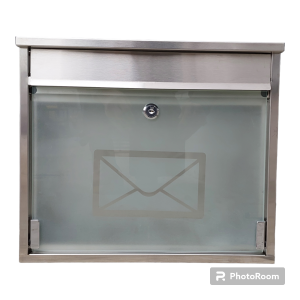 Nerezová poštovní schránka s horním vhozem, včetně zámku a průhledového okýnka.