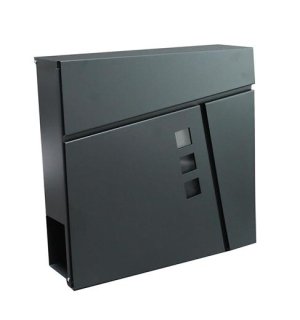 Poštovní schránka, rozměry 370x370x105 mm, antracit, vhoz shora + tubus na noviny, zámek na klíč, montážní sada součástí balení.