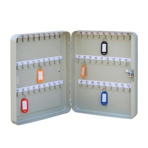 Rozměry 25 x 18 x 8 cm. Zamykací kovová lakovaná schránka na uložení 48 klíčů, montáž na stěnu.