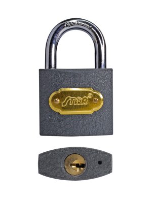 Zámek visací STAR 10HS / 50 mm, Fe, 3 kl. šířka: 50 mm materiál: železo počet klíčů: 3 Železný visací zámek.