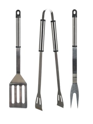 Nářadí grilovací BBQ, nerez, sada 3díl. sada obsahuje 3 díly: - kleště - obracečka - vidlička materiál: nerez ocel Sada obsahuje základní nářadí potřebné při grilování.