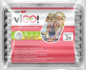 Zesílené hliníkové grilovací tácky s vyšším okrajem.