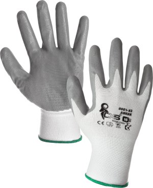 Praktické pracovní rukavice potažené průhledným nitrilem.