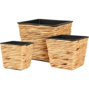Sada čtvercových květináčů - 3 ksMateriál: vodní hyacint, plastRozměry:12,8x12,8x12 cm 16x16x14 cm 20x20x17 cmBarva: přírodní hnědá