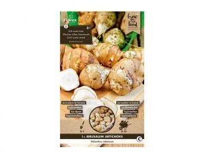 Topinambur má jedlé, bílé hlízy, které mají nepravidelný tvar.
