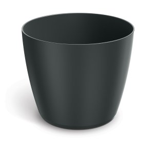 Jednoduchý plastový květináč s průměrem 16,5 cm.
