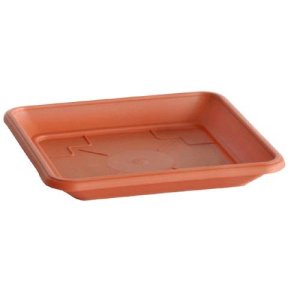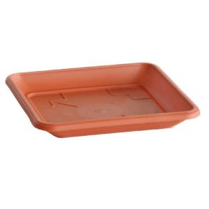 Čtvercová miska,která je nezbytným příslušenstvím ke květináčům téhož tvaru.