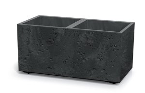 Modulární květináč pro vnitřní i venkovní prostory, kvalitní plastové provedení, stylový design napodobující beton. 2 vnitřní prostory s vnitřními vložkami oddělené přepážkou, stohovatelná konstrukce, …