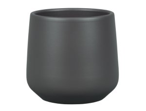 Matný, hladký, keramický obal na květináč osázený rostlinami.