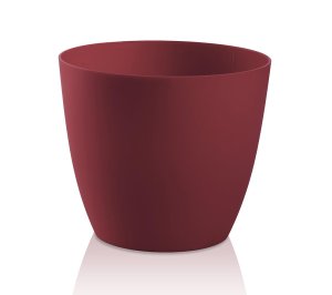 Plastový, matný, hladký květník s linií pod horním okrajem.