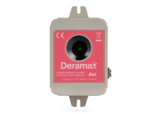 Odpuzovač Deramax netopýrů, typ plašiče: utrazvukový (zcela bezhlučný), automatická změna kmitočtu i výkonu, dosah až 18 metrů v úhlu 180 stupňů, vliv na člověka: žádný