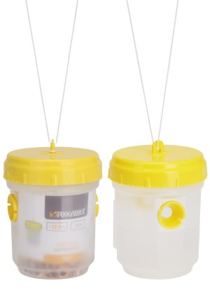 Lapač vos pr. 9 x 12,5 cm, PH TRA / ŽL. průměr: 9 cm výška: 12,5 cm materiál: polypropylen barva: transparentní tělo, žluté víčko Vosy jsou přitahovány do pasti, odkud již nemohou vylétnout.