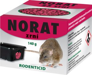 Rodenticidní přípravek ve formě granulí pro použití uvnitř a v blízkém okolí budov k regulaci výskytu potkanů.