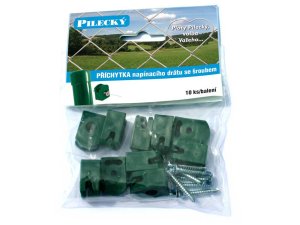 Příchytka napínacího drátu se šroubem ZE (10 ks). barva: zelená balení: 10 ks Příchytka slouží k uchycení pletiva k plotovému sloupku.