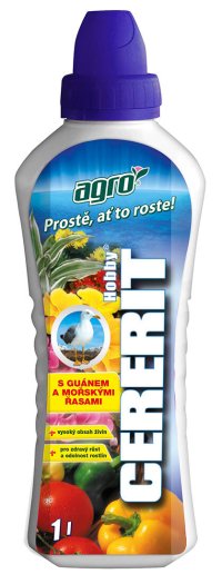 Hnojivo Cererit Hobby (guano, mořské řasy) 1 l, kapalné, AGRO. objem: 1 l složení: dusík – fosfor – draslík v poměru 5 - 5 - 5 dávkování: 15 ml (víčko od lahve) nalijte do 4 litrů vody a promíchejte …