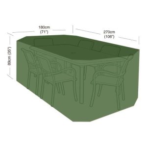 rozměry: 270 x 180 x 89 cm materiál: PE (polyethylen) 90 g/m2 barva: zelená Krycí plachta na set 6 židlí + obdelníkový stůl slouží pro dlouhodobé zakrytí a chrání před deštěm, prachem a větrem.