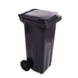 Popelnice plastová Určena pro běžný sběr komunálního a průmyslového odpadu Barva: černá Opatřena kolečky pro snadnou manipulaci Objemu 120 l Rozměry: š=480mm, v=950mm, h=540mm