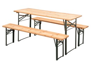 Set zahradní pivní, dřevo / kov, stůl + 2 lavice. set obsahue: 1 x stůl, rozměry: 180 x 50 x 77 cm, nosnost 150 kg 2 x lavice, rozměry 180 x 25 x 46 cm, nosnost 250 kg materiál: kov, dřevo Zahradní pivní …