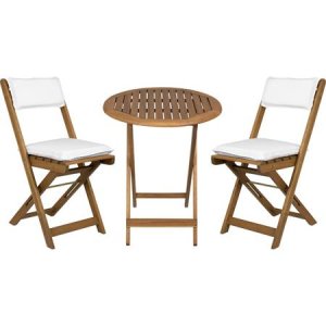 3dílná bistro sada skládající se ze 2 židlí a stolumateriál: akátové dřevobarva: teakový Úspora místa: židle i stůl jsou skládací2x bistro židle: 53 x 40 x V82 cm1x bistro stůl: 65 x 65 x V73 cmhmotnost: …