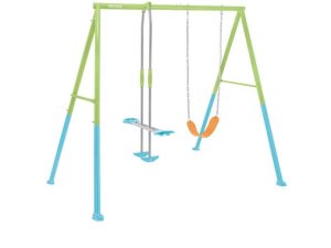 Ocelová houpací sestava Intex se skládá z jedné klasické výškově nastavitelné houpačky a druhé se dvěma pohodlnými sedadly proti sobě.