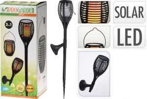- zahradní solární lampa v designu pochodně- multifunkční využití 4v1- lze použít jako stojící v zemi, zavěsit, postavit i přimontovat na stěnu- součástí je hrot k zapíchnutí do země, hák k zavěšení …