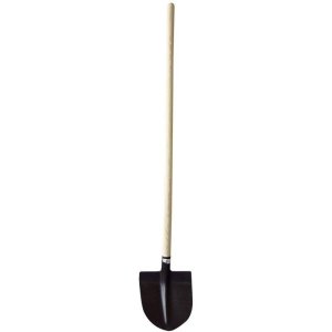 Ocelová špičatá lopata s násadou vhodná pro práci na zahradě nebo na stavbě.